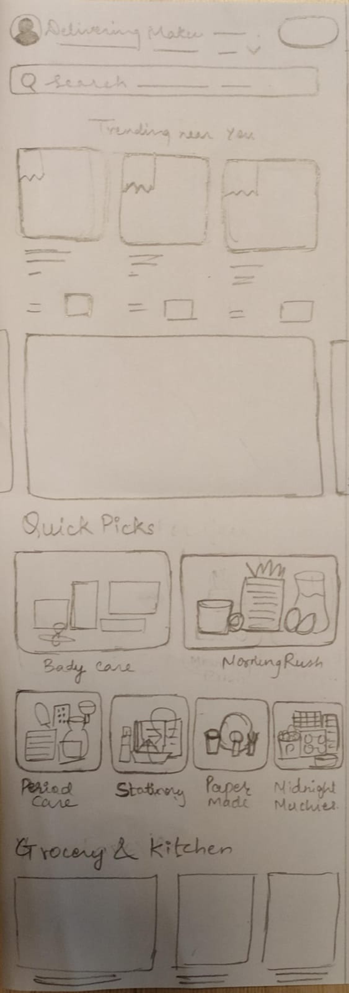 Analyzed similar features in apps like Amazon Fresh, Instacart, and Blinkit to understand their design processes and best practices for usability and design.
